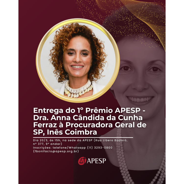 No Mês das Mulheres, APESP homenageará a Procuradora Geral, Inês Coimbra, com o 1º Prêmio “APESP – Dra. Anna Cândida da Cunha Ferraz”