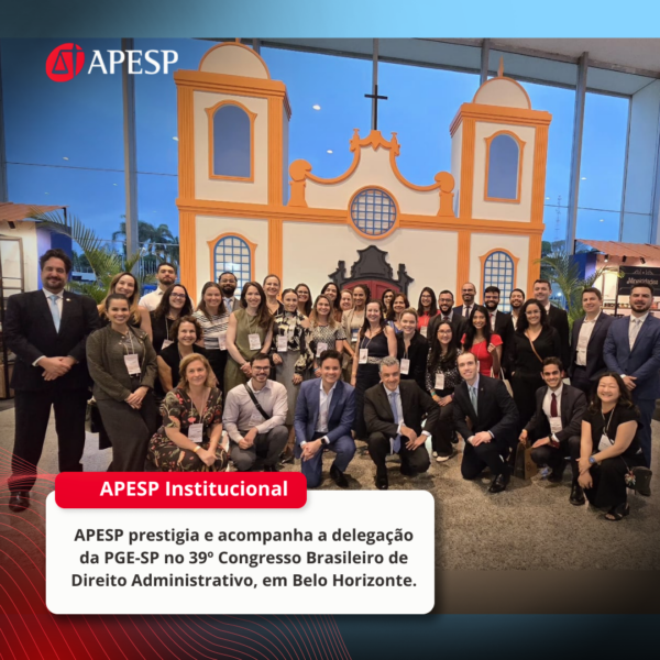 O Presidente da APESP, José Luiz Souza de Moraes, acompanhou a delegação da PGE-SP no 39º Congresso Brasileiro de Direito Administrativo, que foi realizado pelo IBDA, entre os dias 8 e 10 de outubro, em Belo Horizonte (MG).