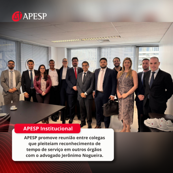 > “A APESP apoia integralmente essa justa reivindicação, que beneficiará todos os colegas que estiverem nessa situação. Podem contar com nosso empenho com apoio na esfera judicial e também na tentativa de resolver a questão administrativamente”, ressalta Moraes.