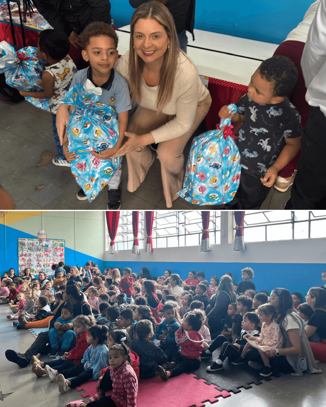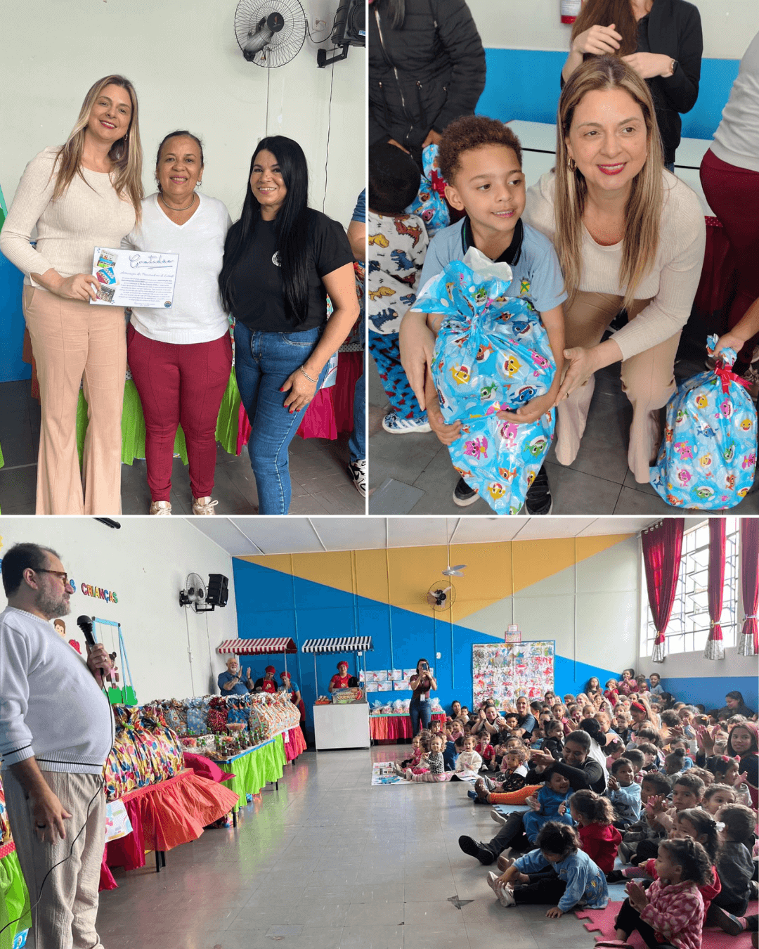 📍 Em 2023 e 2024, a criançada da creche Comendador Piero Pollone recebeu brinquedos em dias inesquecíveis.