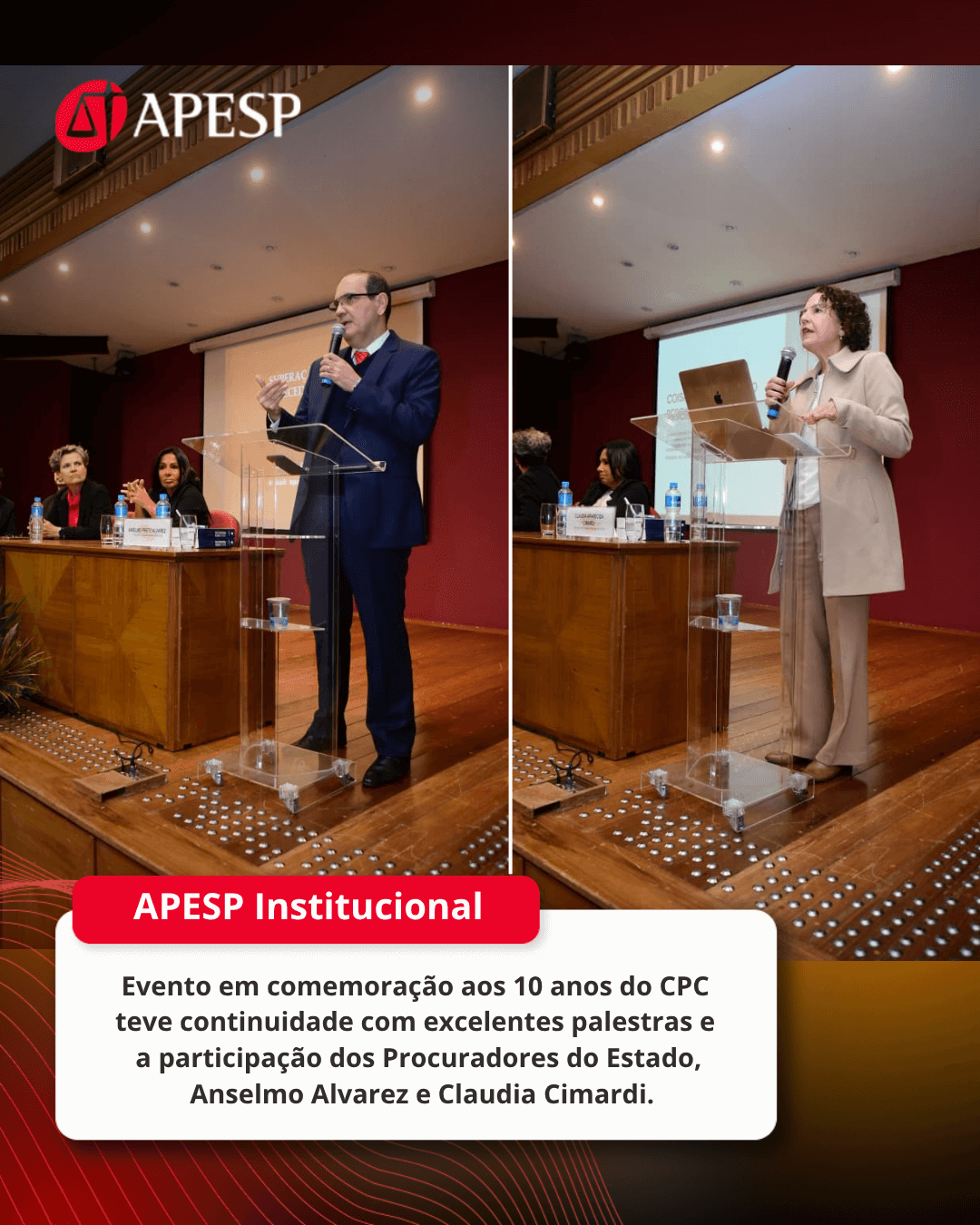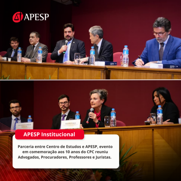 A APESP e o Centro de Estudos promoveram hoje (23) um evento em comemoração aos 10 anos do Código de Processo Civil (CPC) de 2015 na sede social da Associação.
