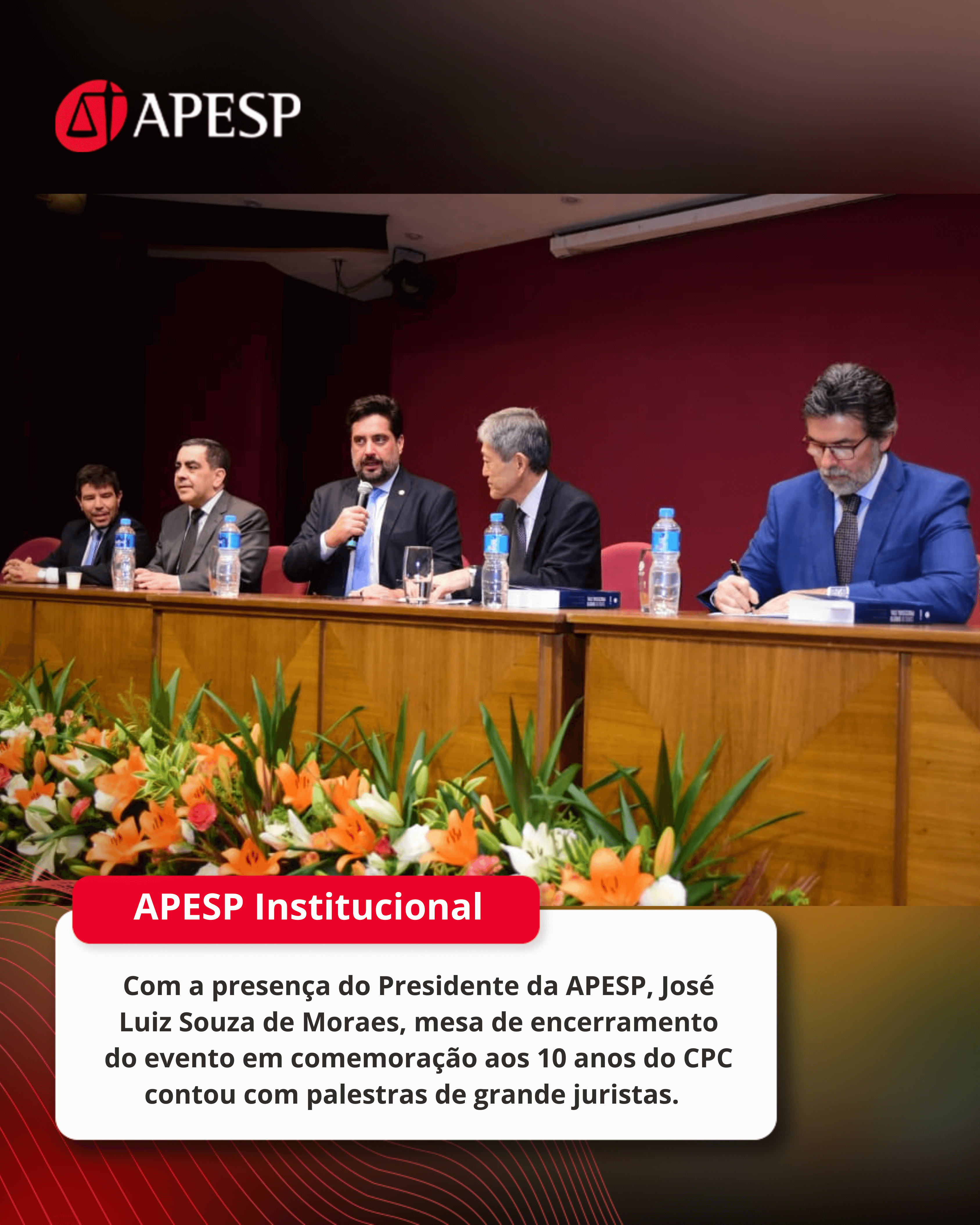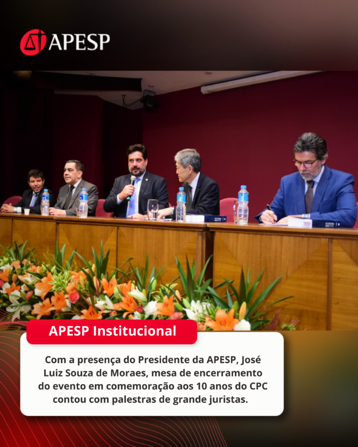 O Presidente da APESP, José Luiz Souza de Moraes, participou, após retornar de Brasília, da mesa de encerramento do evento em comemoração aos 10 anos do Código de Processo Civil (CPC) de 2015.