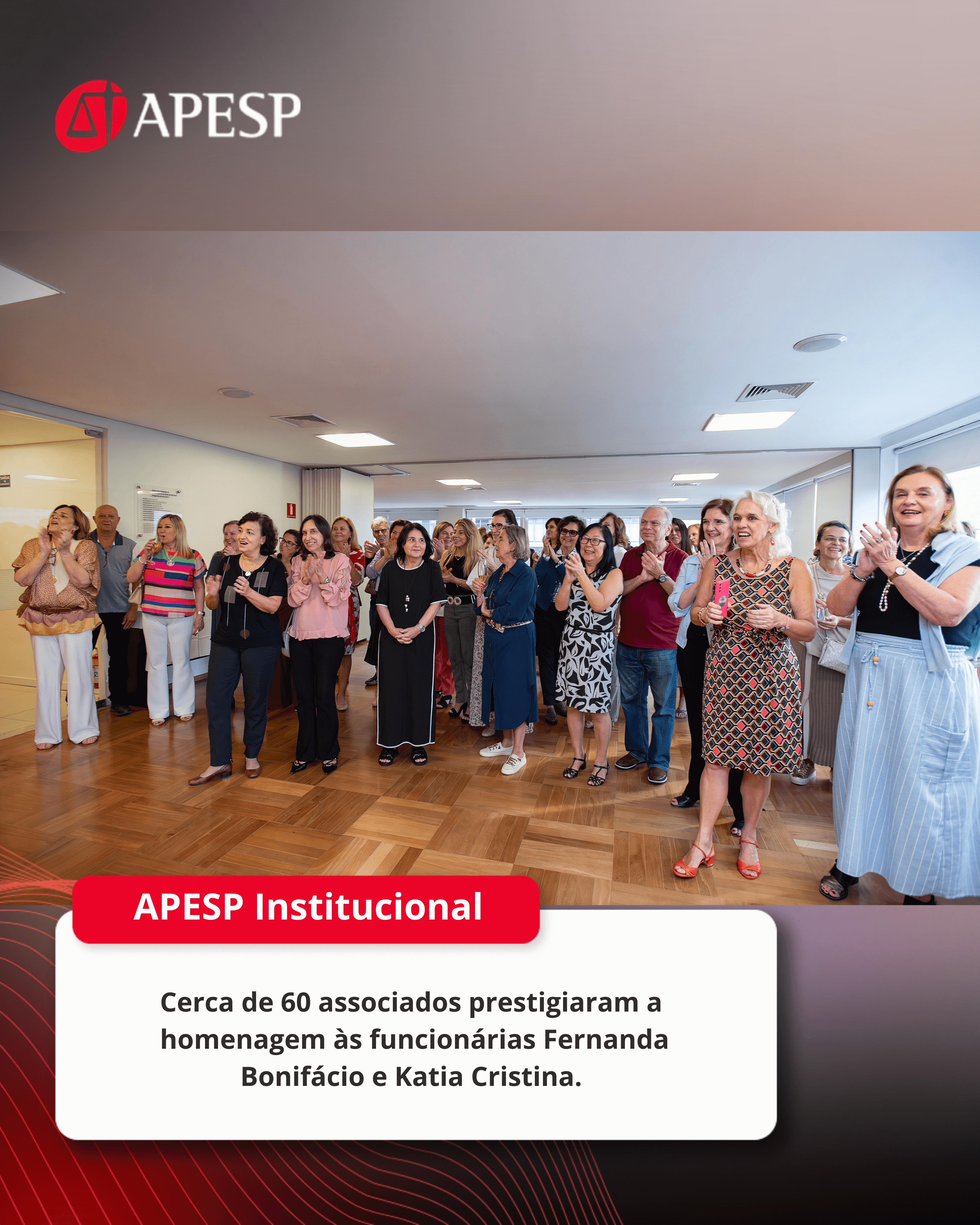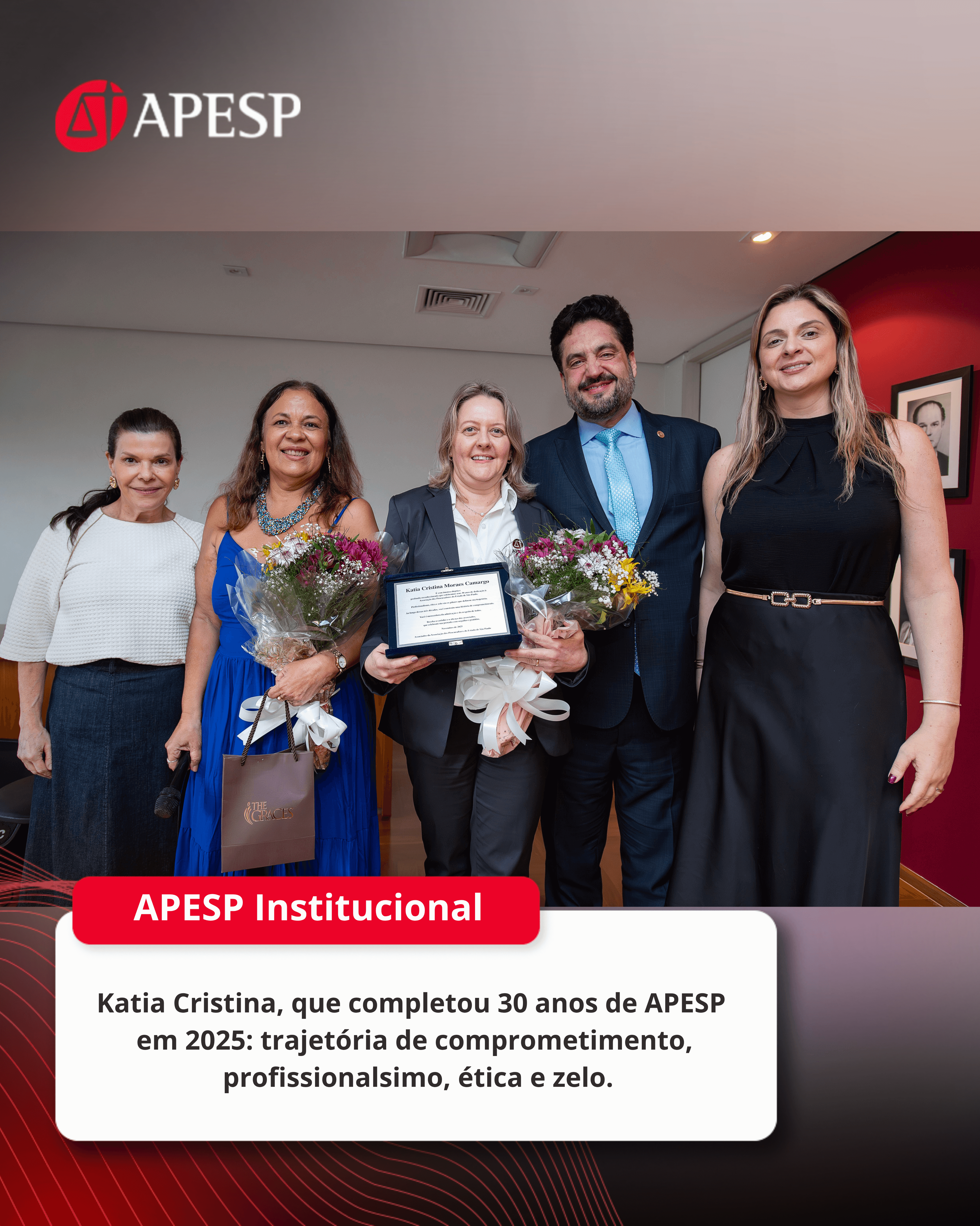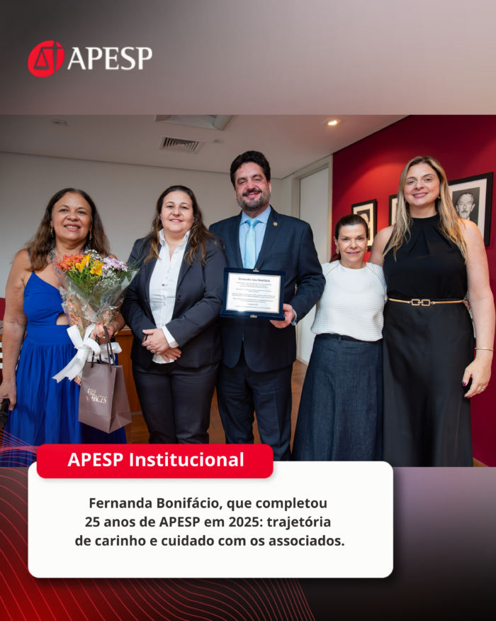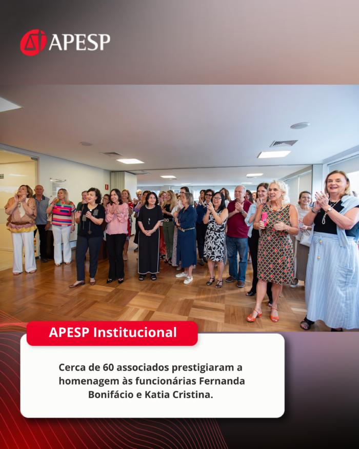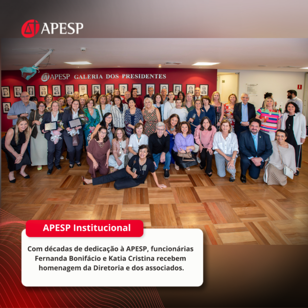 “Os nossos colaboradores têm uma relação próxima e diária com os nossos associados, que são o ‘coração’ da APESP. As queridas Fernanda e Katia são exemplos de zelo, carinho e comprometimento e merecem todo o nosso respeito e admiração”, ressalta o Presidente da APESP, José Luiz Souza de Moraes.