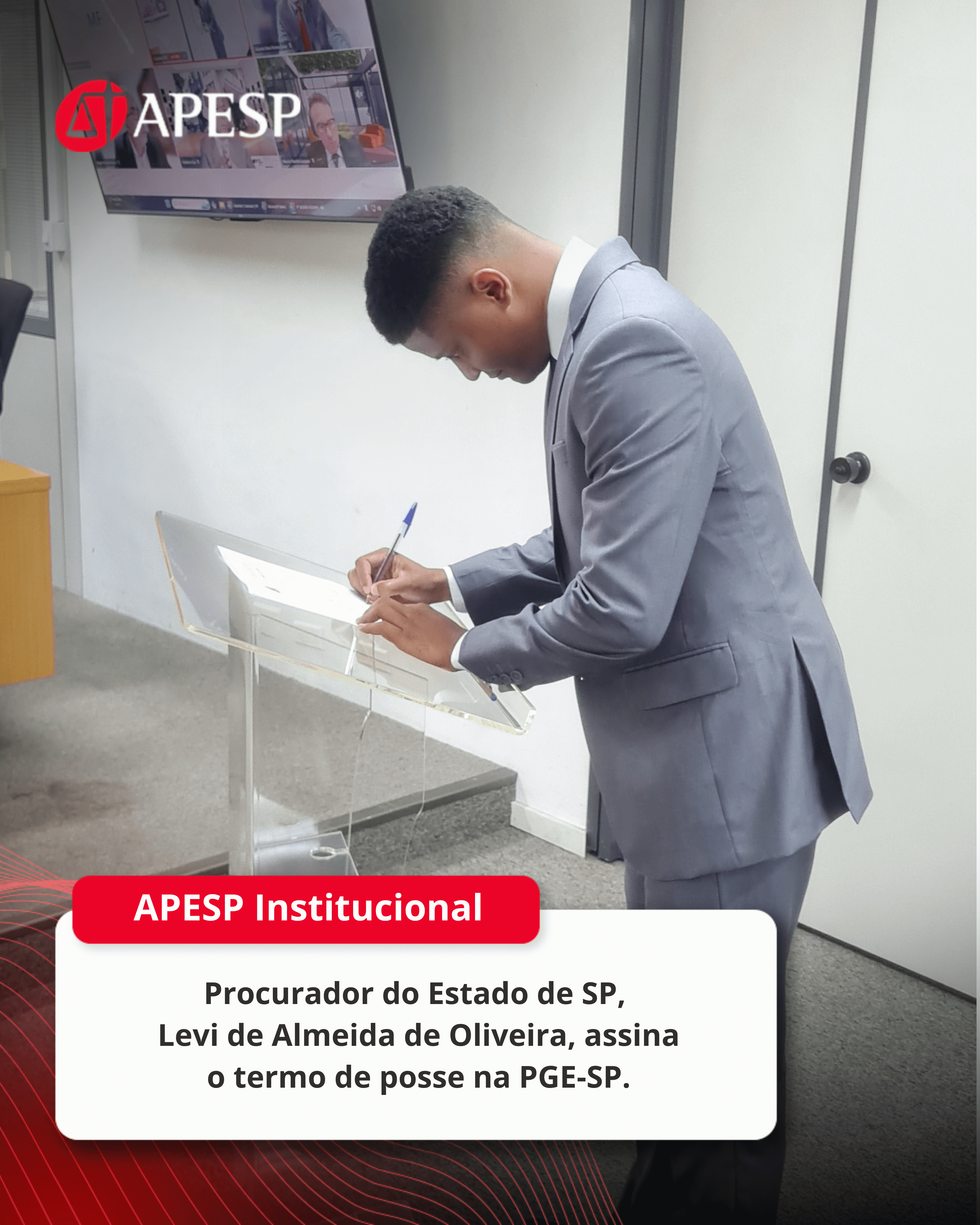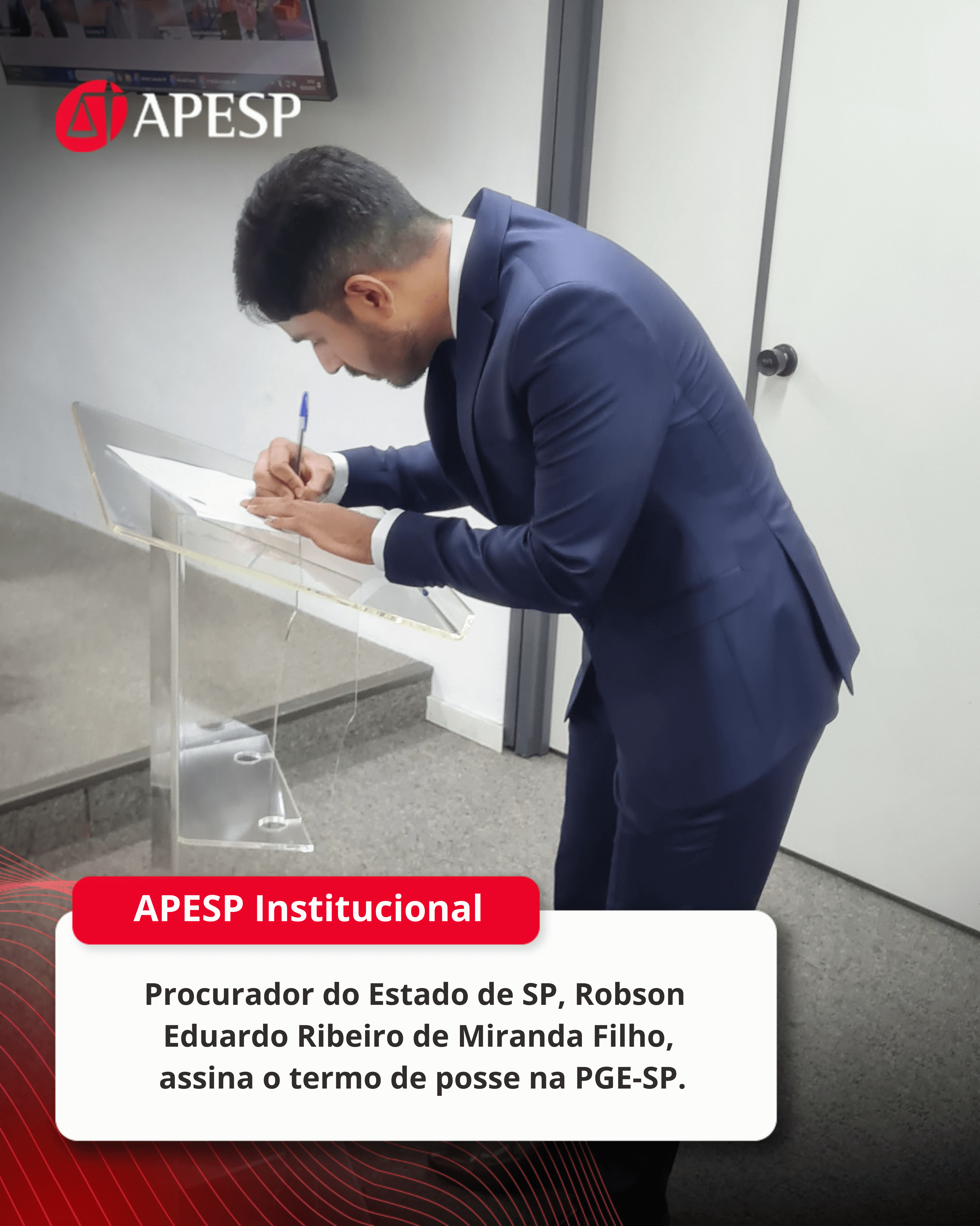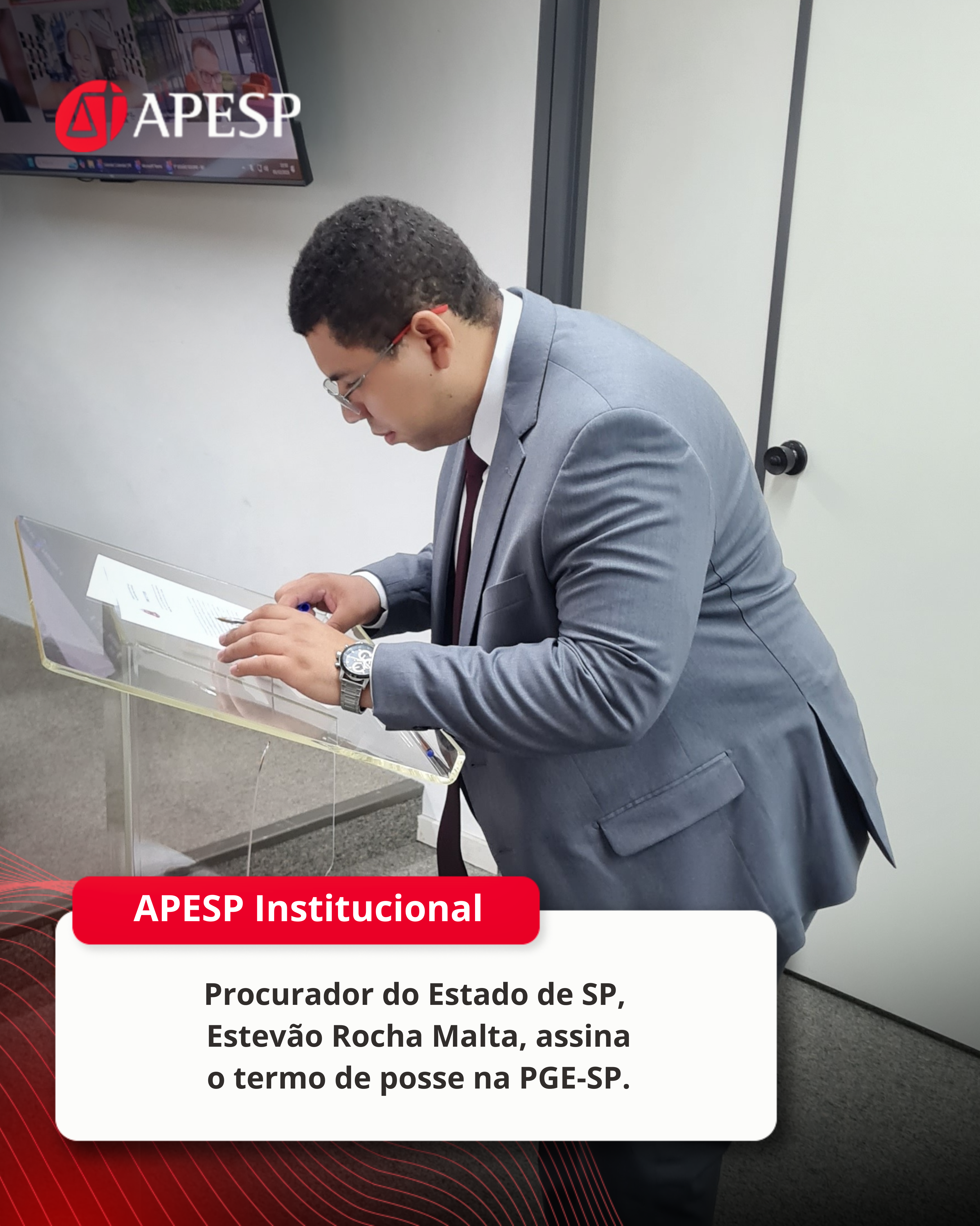 Por fim, colocou a APESP à disposição dos novos colegas. “Sejam muito bem recebidos também pela APESP. Contem conosco todos os dias. na defesa dos seus interesses e também na defesa da Procuradoria”.