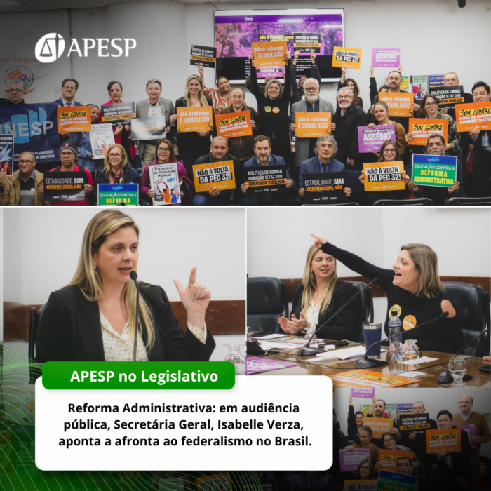 A Secretária Geral da APESP, Isabelle Verza, participou ontem (9) de uma audiência pública com entidades de classe contrárias ao pacote de proposta de Reforma Administrativa […]