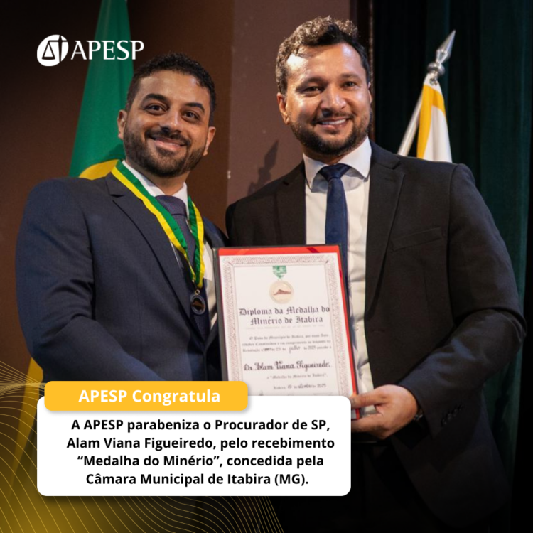 A APESP congratula o Procurador do Estado de São Paulo, Alam Viana Figueiredo, da Coordenadoria de Execuções contra a Fazenda Pública (CEFAP), pelo recebimento da “Medalha […]
