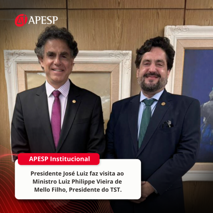 O Presidente da APESP, José Luiz Souza de Moraes, realizou hoje (1º) uma visita institucional ao Gabinete da Presidência do Tribunal Superior do Trabalho para parabenizar […]
